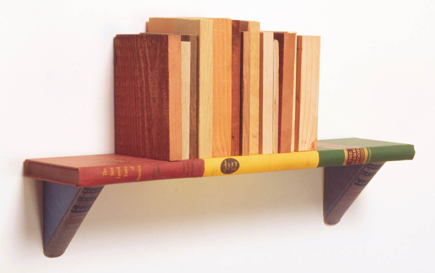 In this shelf, all titles refer to trees, wood, forests and the like. The “books” on top are not attached.